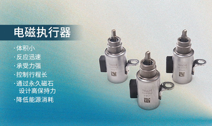 【用途】對應汽車的電動化課題,通過電磁執(zhí)行器來實現(xiàn)由手動到電動的變化如自動駐車、電子換擋、離合器控制等 【特點】體積小、反應迅速、承受力強、控制行程長、通過永久磁石設計高保持力降低能源消耗 【應用實績】愛信8AT自動駐車采用量產中應多加客戶要求面向CVT、AT、PHEV等各種規(guī)格開發(fā)試驗中。