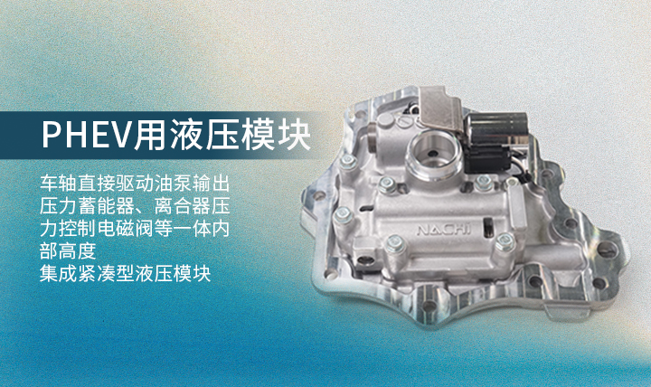 【用途】通過PHEV用液壓模塊高速切換發(fā)動機和電機控制方式以及離合器控制等 【特點】車軸直接驅動油泵輸出壓力蓄能器、離合器壓力控制電磁閥等一體內部高度集成緊湊型液壓模塊 【應用實績】三菱汽車歐藍德PHEV采用量產中長安汽車、東風汽車采用預計2018年下半期投放市場